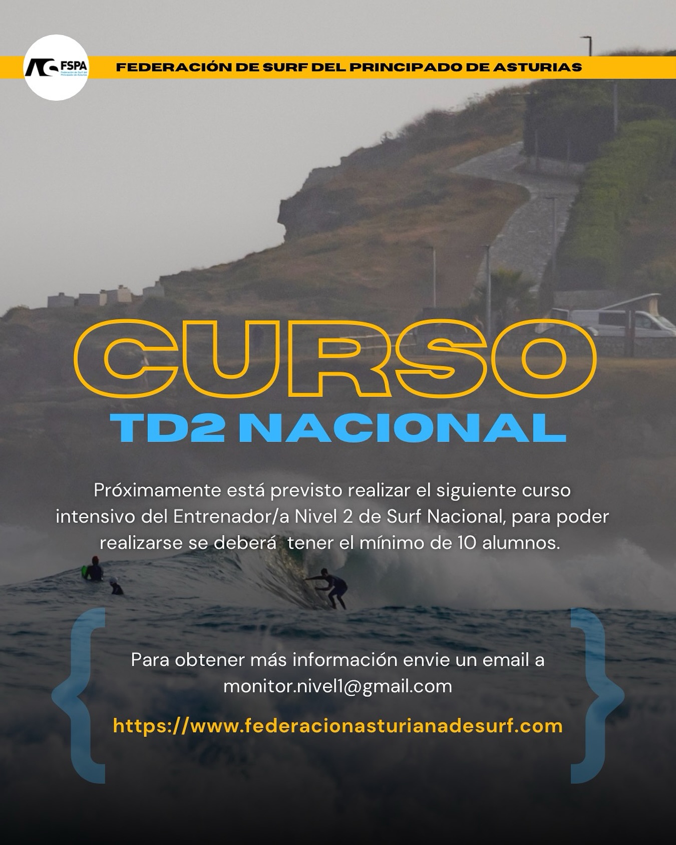 Curso TD2 Nacional 3 horas ago 0Comments Próximamente está previsto realizar el siguiente curso intensivo de Entrenador/a Nivel 2 de Surf Nacional, para poder realizarse se deberá tener el mínimo de 10 alumnos. Para obtener más información envié un email a monitor.nivel1@gmail.com. SHARE: